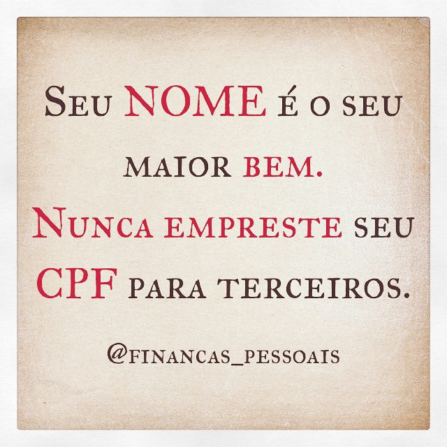 Não empreste seu nome/CPF nem para filhos, nem para netos, nem para ninguém, companheiros inclusive. Imagine: se a pessoa não pode usar o próprio CPF dela para contratar um empréstimo, é porque ela provavelmente já é inadimplente, já está endividada em um valor acima do que ela é capaz de pagar.