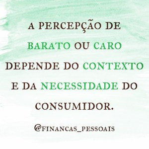 Barato ou caro sempre depende do contexto. Verifique se você não está se deixando levar pela percepção dos outros e fazendo escolhas financeiras que não refletem a sua própria percepção de valor. Quem é responsável pelo uso do seu dinheiro e pelas suas escolhas financeiras é você! Aprender a decidir por si só, se blindando da opinião dos outros que são diferentes das nossas pode parecer difícil mas é possível e vale a pena! 😉